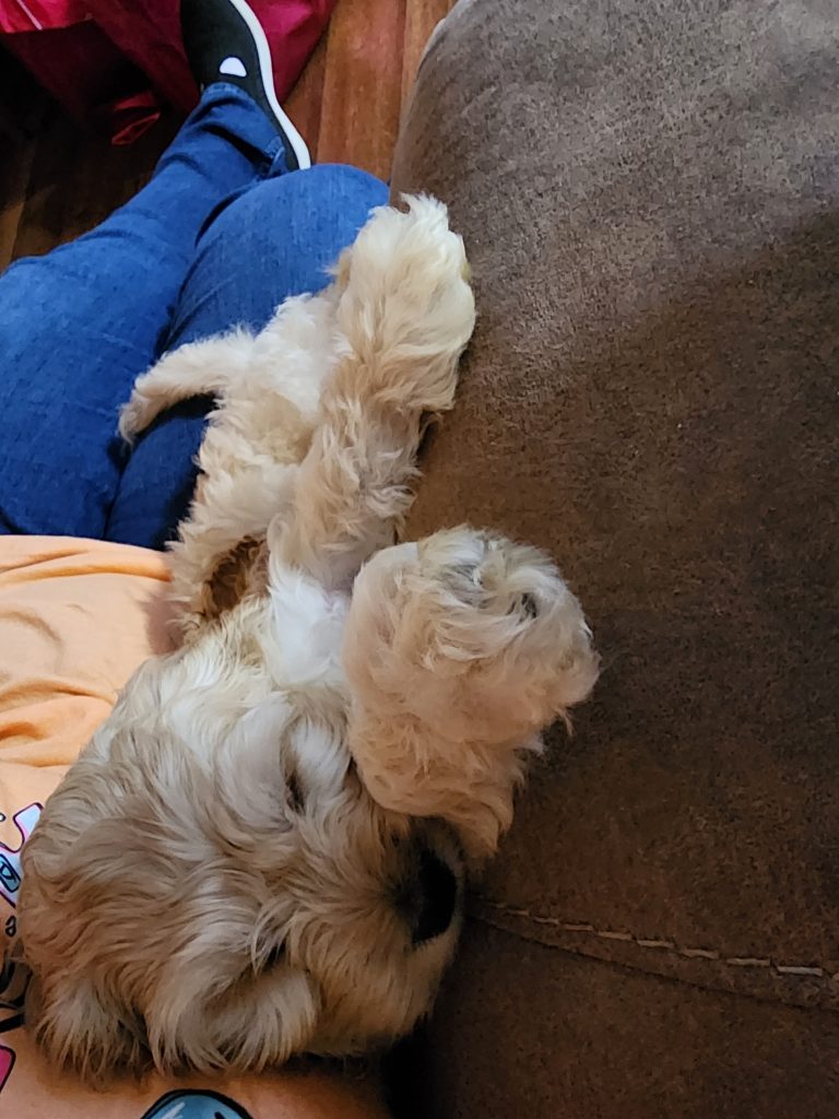 Gingy is the runt of the litter and the sweetest puppy. She loves to cuddle so much. She isn’t afraid to get spicy when needed. She needs a loving home with lots and lots of cuddles.