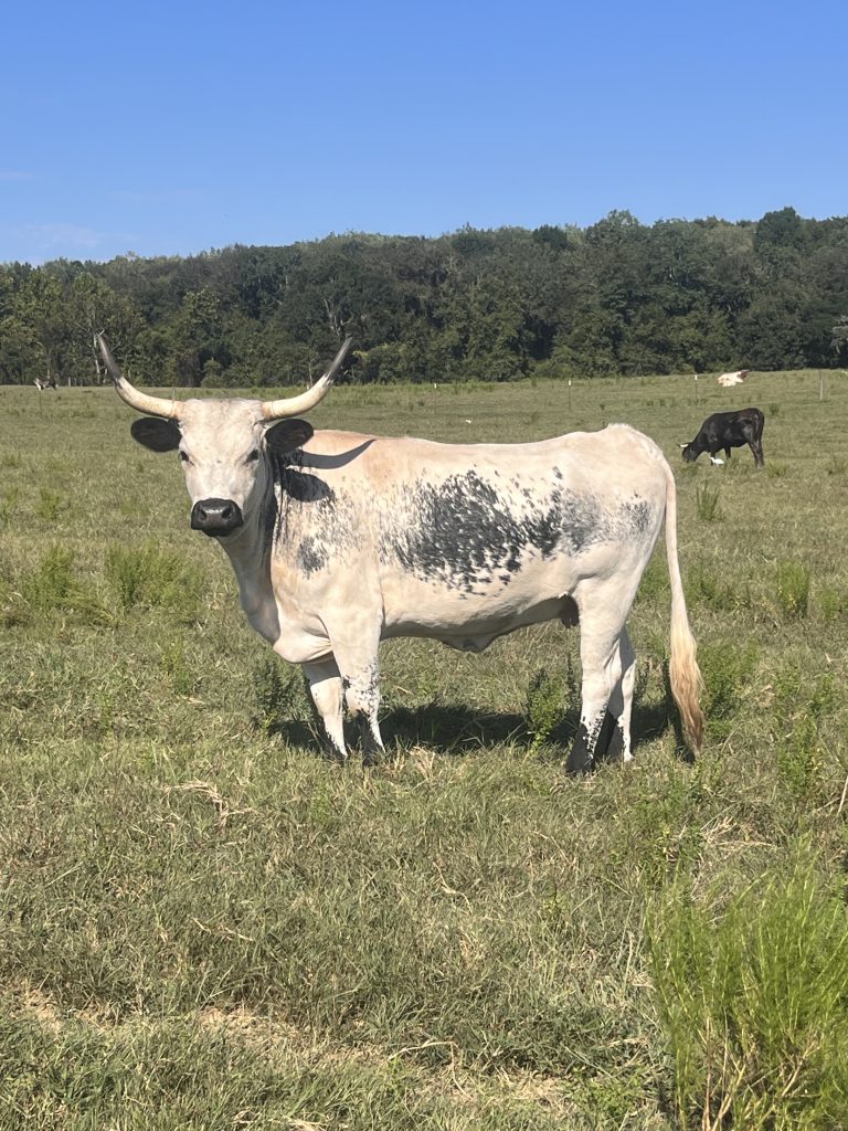 Nice young Corriente longhorn cross cow bred to a low birth weight Charolais bull ( will be her second calf ) Feel free to reach out for further details –